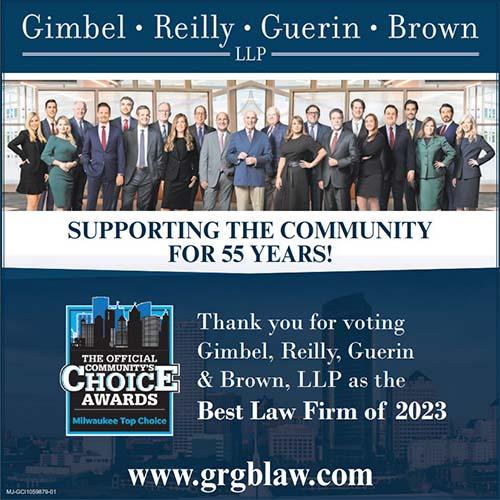 Gimbel, Reilly, Guerin & Brown Named Best Milwaukee Law Firm Of 2023 By The Top Choice Awards And Featured In The Milwaukee Journal Sentinel